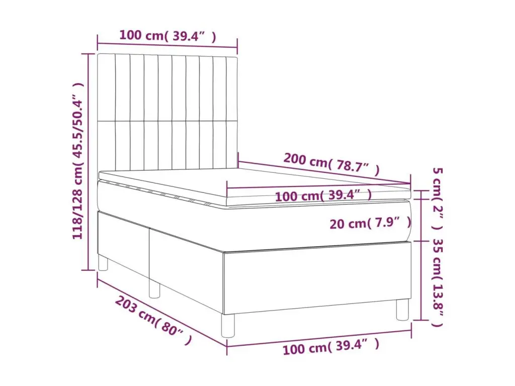 Clicnbuy vous propose : Utilisez ce sommier tapissier avec matelas et LED pour profiter d'un sommeil réparateur ! C'est le point central de votre chambre à coucher. Tissu durable : le tissu présente un aspect simple et épuré, et il est respirant et durable.Tête de lit pratique : la tête de lit est réglable en hauteur selon vos préférences. La tête de lit vous offre un excellent soutien du dos lorsque vous êtes assis dans votre lit pour lire ou regarder la télévision.Bande LED colorée : apportez de l'éclairage dans l'obscurité avec des lumières LED colorées !Matelas à ressorts ensachés : le ressort ensaché individuel intégré est connu pour sa très haute qualité tout en assurant un haut niveau de durabilité et d'adaptabilité. Il peut absorber efficacement le bruit et les chocs causés par les sauts et les rotations.Protège-matelas doux pour la peau : le protège-matelas est recouvert d'un tissu résistant et doux pour la peau, ce qui le rend souple et confortable. Remarque :Pour des raisons d'hygiène, le matelas ne peut pas être retourné si l'emballage est retiré ou ouvert.Seule la partie avec un symbole de ciseaux peut être coupée et seule la partie avec l'USB continuera à fonctionner comme avant.Chaque produit est livré avec un manuel de montage dans la boîte pour un montage facile.Ce produit est doté d'un connecteur USB, mais la source d'alimentation certifiée de USB 5V n'est pas incluse.