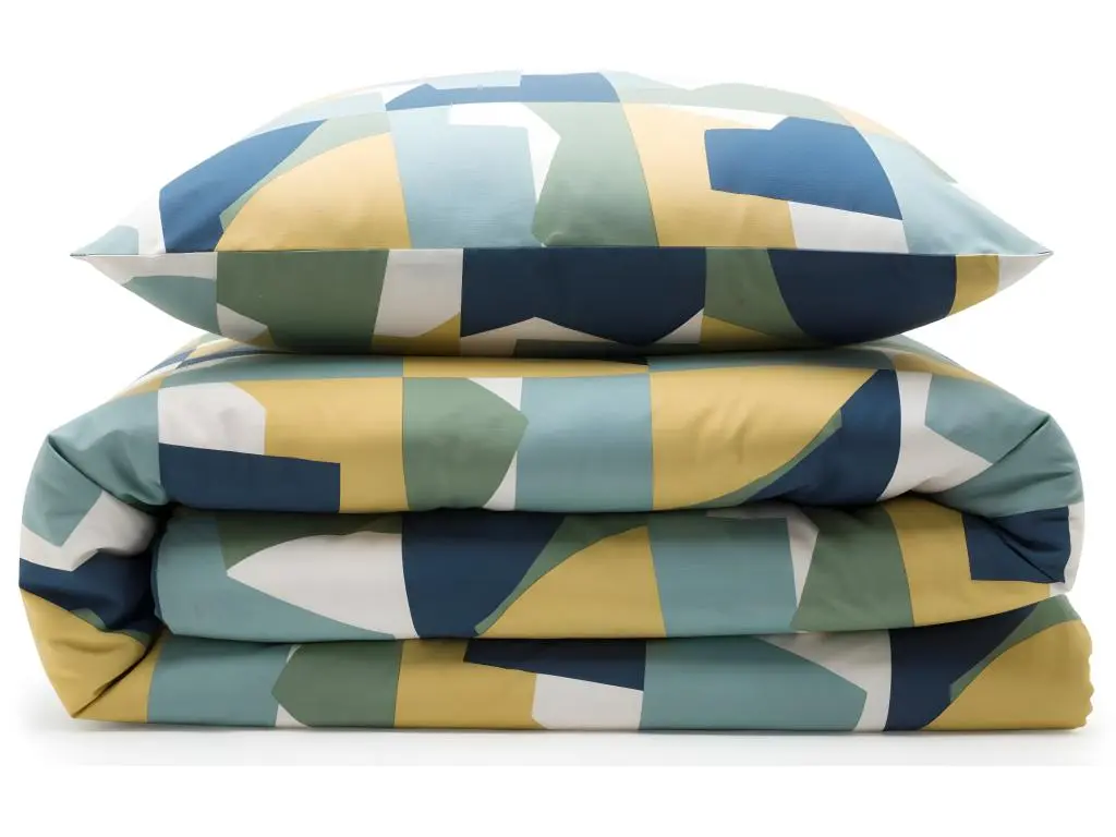 Parure de lit en coton réversible imprimé géométrique 57 fils vert comprenant 1 housse de couette + 2 taies d'oreiller 63x63cm.