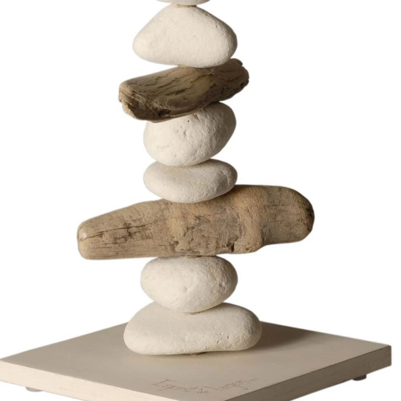 Pour une déco proche de la nature, optez pour cette lampe beige de fabrication artisanale, créée avec du bois flotté et des galets ramassés sur la côte.