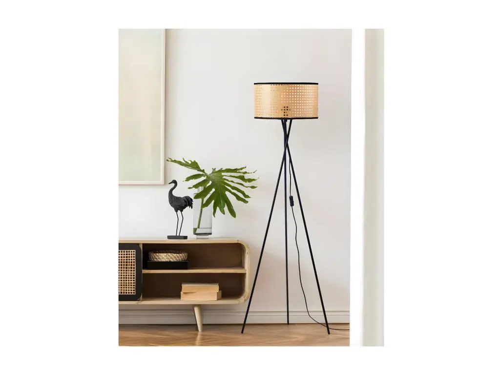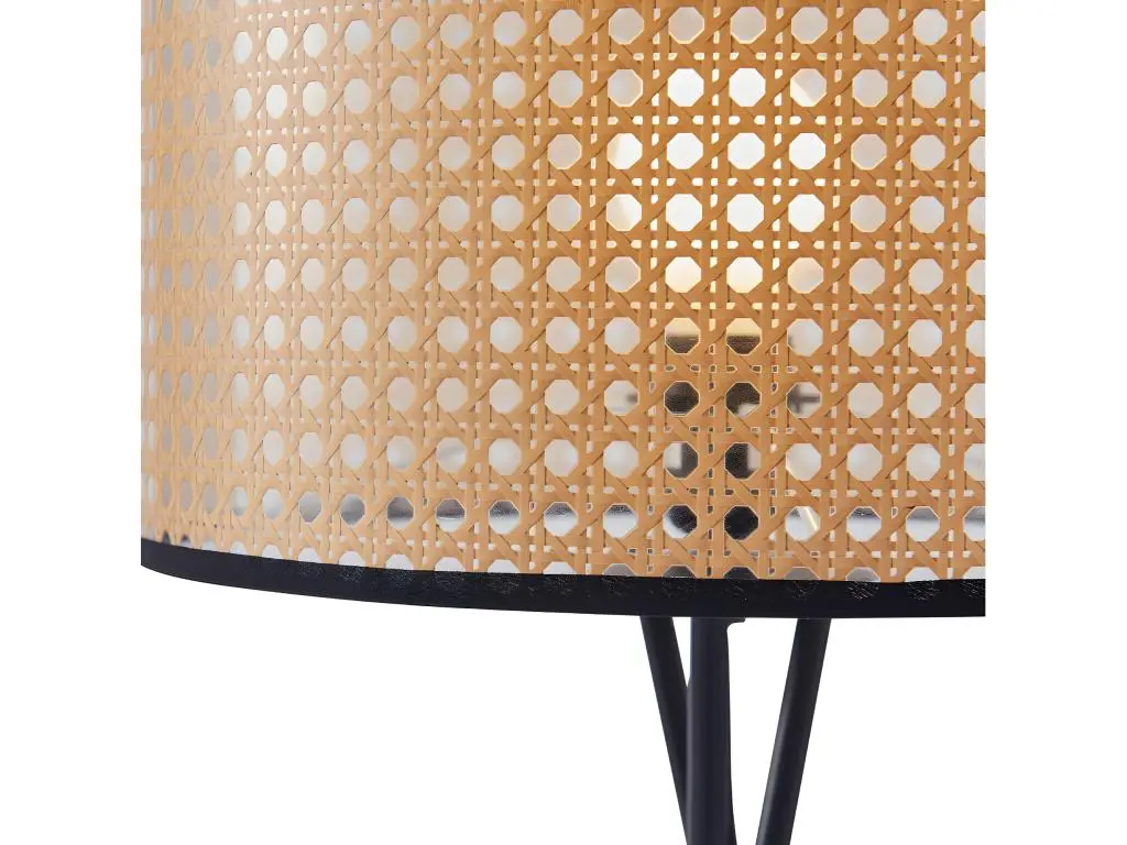 Craquez pour ce lampadaire avec trépied en métal et son abat jour perforé en PVC. Son design et sa finition cannage apporteront une ambiance cosy à votre intérieur.