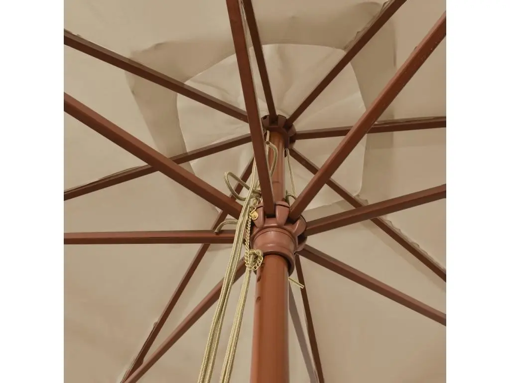 Clicnbuy vous propose : Ce parasol de jardin est parfait pour créer de l'ombre et vous protéger des rayons UV nocifs du soleil. Matériau durable : fabriqué en polyester anti-UV et anti-décoloration, le parasol vous offre une protection optimale contre le soleil et est facile à nettoyer.Cadre stable : le mât en bois dur solide avec des nervures durables rend le parasol de jardin très stable et durable.Ventilation : le morceau de tissu supplémentaire au sommet du parasol permet au vent et à la chaleur de s'évacuer, ce qui fait de ce parasol un excellent choix pour la vie à l'extérieur.Facile à utiliser : le parasol d'extérieur s'ouvre et se ferme facilement grâce au système de double poulie. Remarque :Ce produit n'est pas 100 % imperméable. Nous recommandons de traiter ce produit avec un spray imperméable pour une meilleure résistance à l'eau.